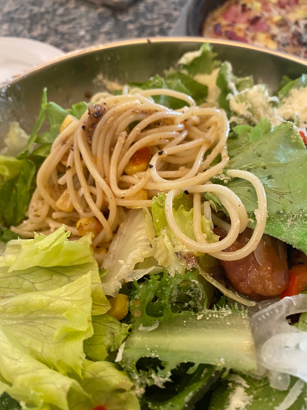 미즈 컨테이너 대표 메뉴 '샐러드 스파게티'