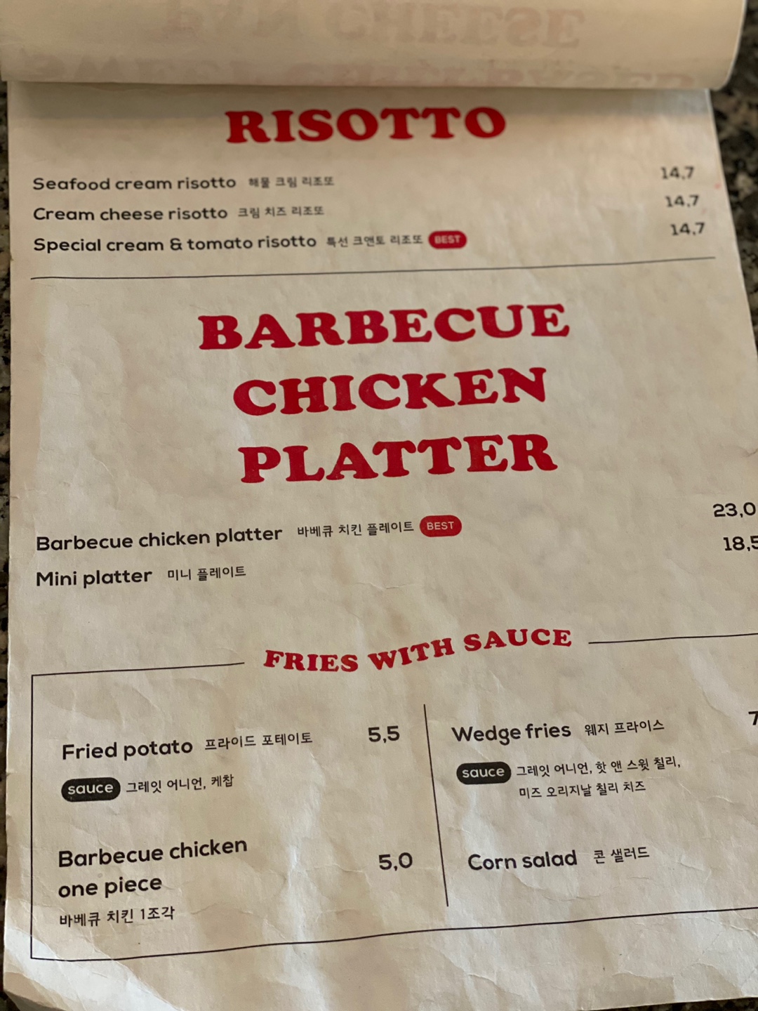 무더운 주방에서 직원들과 즐겨 만들어 먹던 그들만의 메뉴. 햄버거용으로 사용하고 남은 양상추와 차가운 면, 그리고 맛있는 소스를 함께 비벼 먹던 것이 그 시작이었다고 한다.