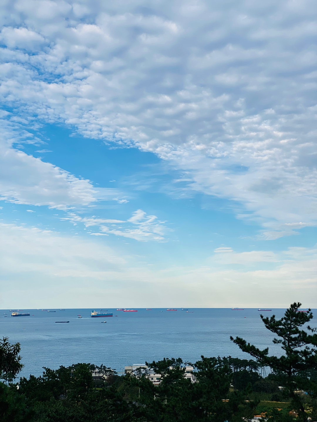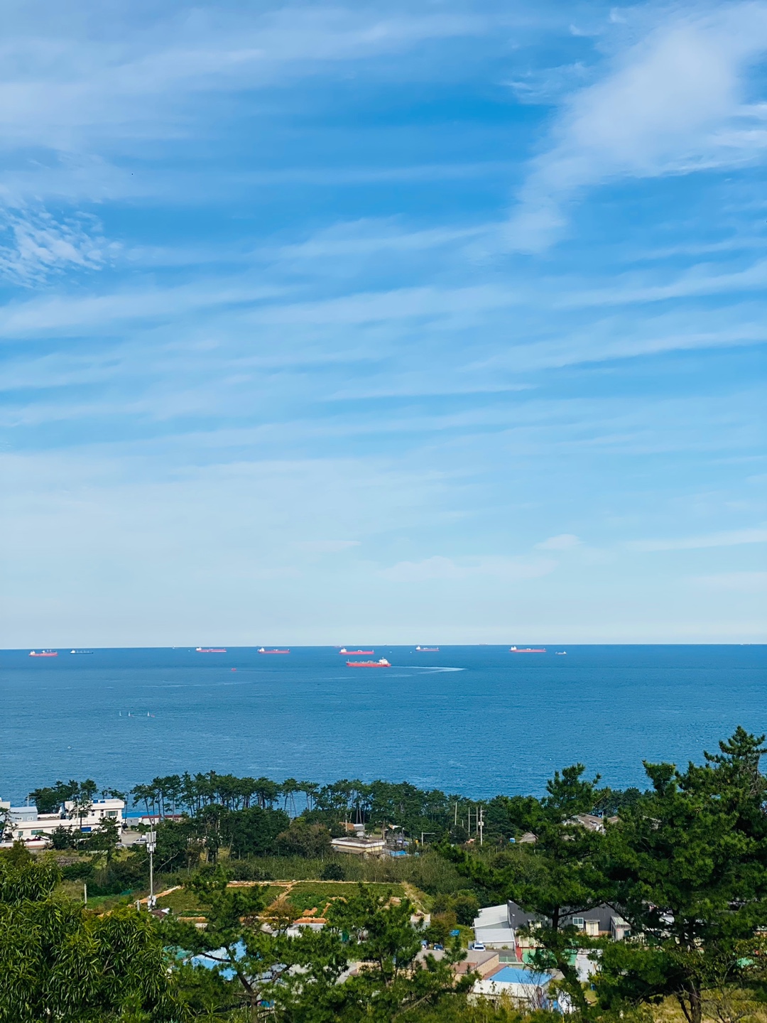 주차를 끝내고 내려서 바라본 펜션 앞 바다뷰